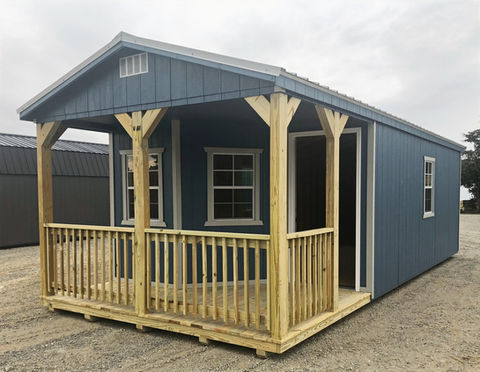 Side Porch Package: Includes one 9-lite house style door, one set double barn doors, two 2X3 windows, and a 6' porch with railing. Building must include porch to get package price.- $995.00